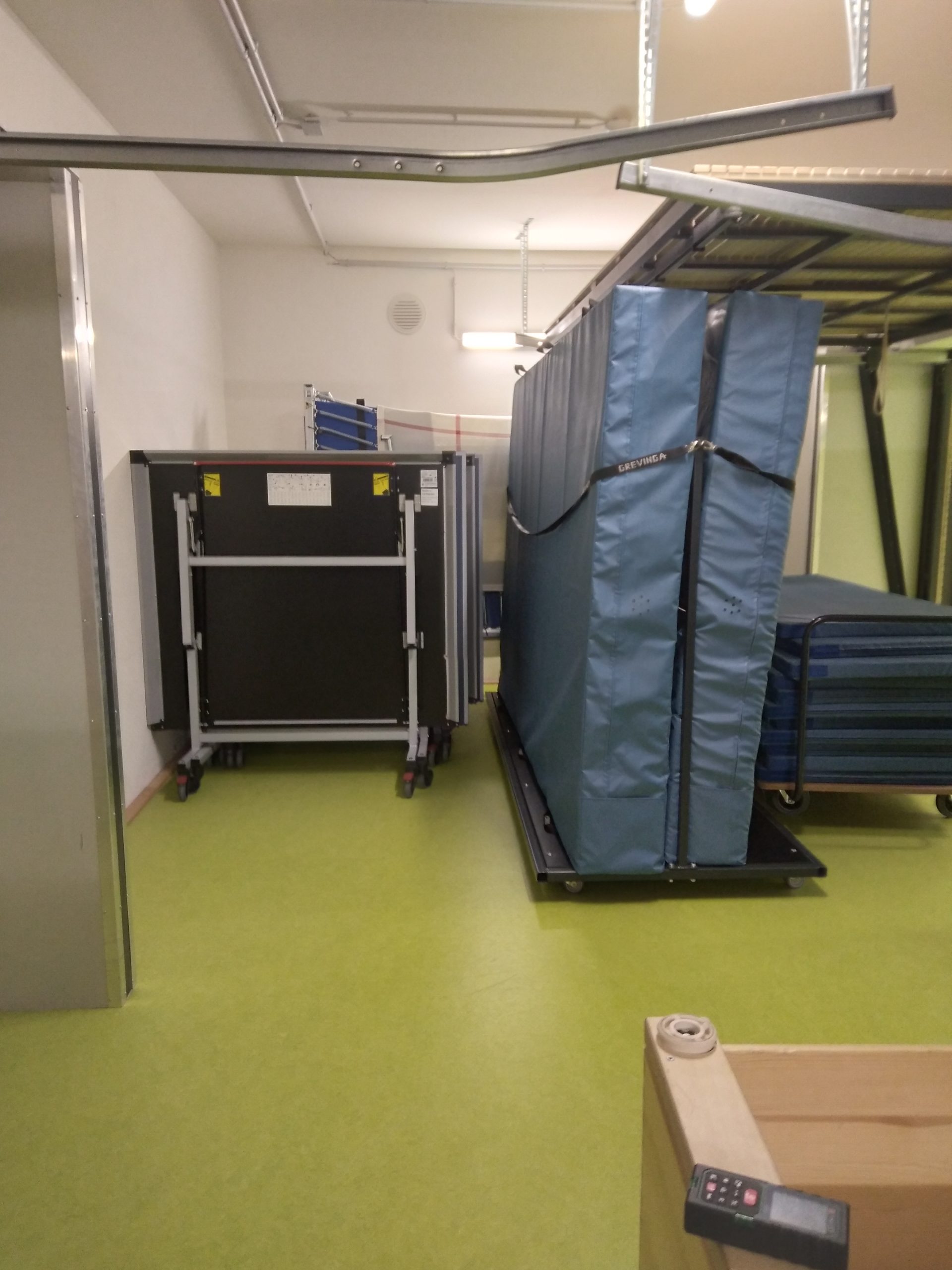 3. leicht versteckt, aber bisher vollkommen ungenutzte Ecke rechts vom Geräteraum-Tor aus Richtung Gymnastikraum (1. Bild).