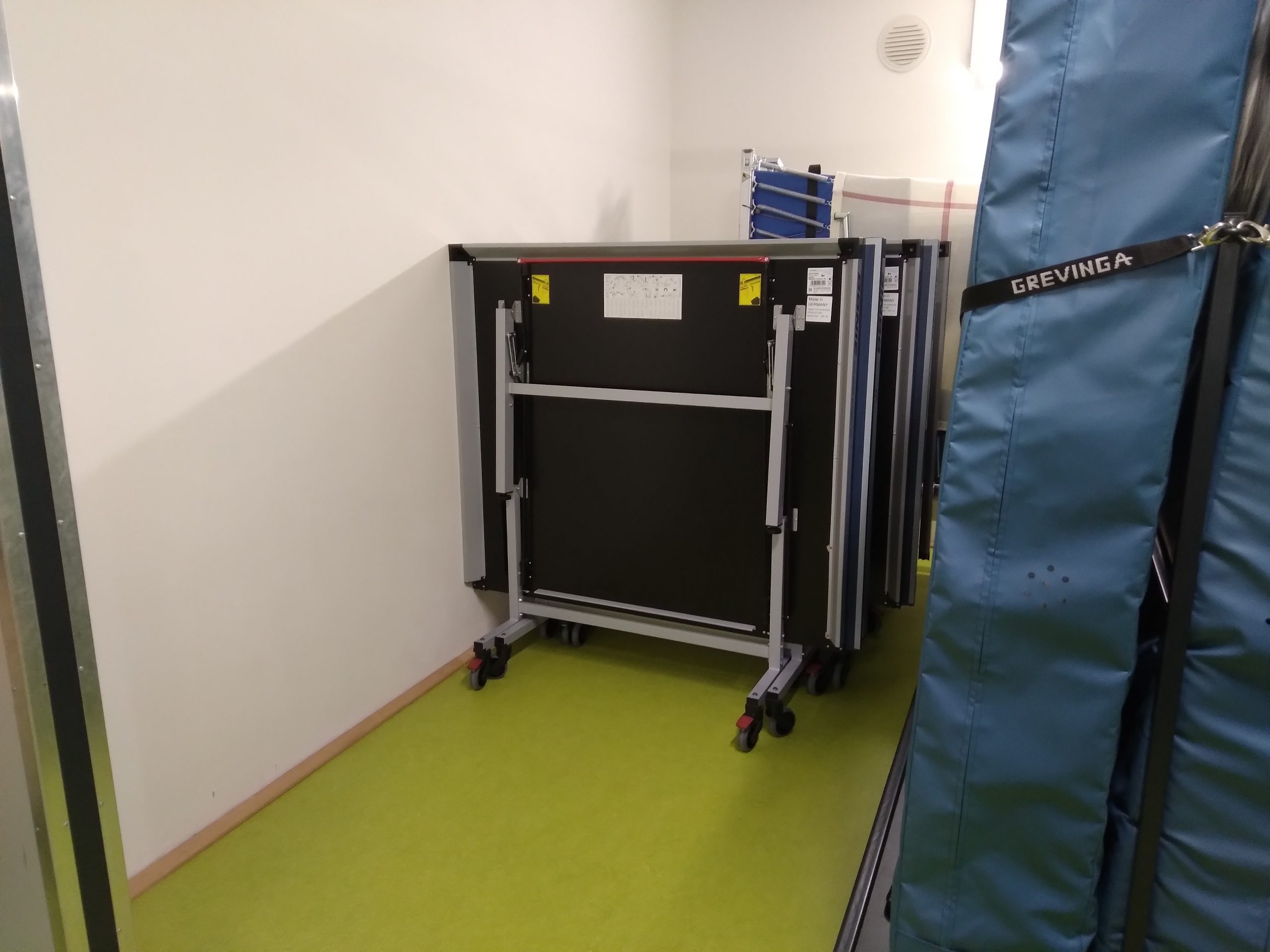 In Hinblick auf Ballschwund und ggf. der sicheren Lagerung der Roboters wäre noch die Schaffung eines eigenen verschließbaren Stauraums für unsere Abteilung sehr erstrebenswert.