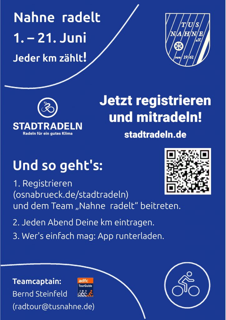 Stadtadeln startet ab 1. Juni – jetzt schon registrieren – TuS Nahne ist dabei
